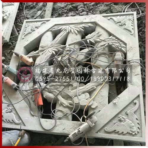 寄情山水,是中國歷代文人的一種嗜癖。生活富足,政治失意,均可在山水之間找到寄托。或遠山近水,或一水兩山,典型的明清山水畫的布局,在門窗浮雕板上均可尋到蹤跡。使用山水作為門窗裝飾的絕對少數,原因是山水畫為文人較高層次的追求,而常人則認為過雅而不悅其目,故而棄之。