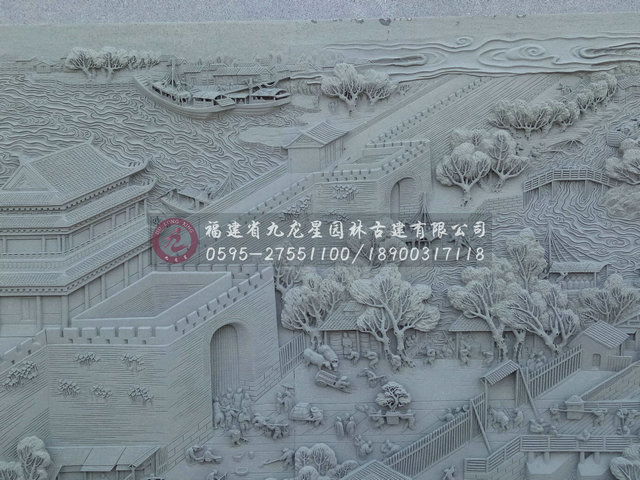 浮雕作為石雕藝術中的一種造型語言和形式,有它特有的塑造方法,它是在有限的塑造空間里對自然物象進行體積上的合理壓縮,并通過透視和錯覺等方法向人們展示較抽象的空間效果。由于浮雕是在第三度空間上經過了壓縮,立體的形象被壓扁,形體上也見薄,所以又往往容易被人錯誤地認為浮雕就是圓雕的一半。