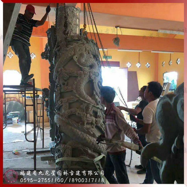 九龍星園林古建專業石雕龍柱生產廠家,龍柱產品質量優,客戶回頭率高。公司多年來精心打造無數經典工程,主要寺廟古建工程案例有馬來西亞魯乃斗母宮、馬來西亞檳城龍王廟石材石雕、泰國丹諾濟公羅漢廟、泰國武拉必臭頭濟公仙師壇項目、印度尼西亞邦加勿里洞觀音堂大型佛像等大批規模大、品位高的寺廟建筑。產品深受海內外客商及業內人士的青睞與好評。