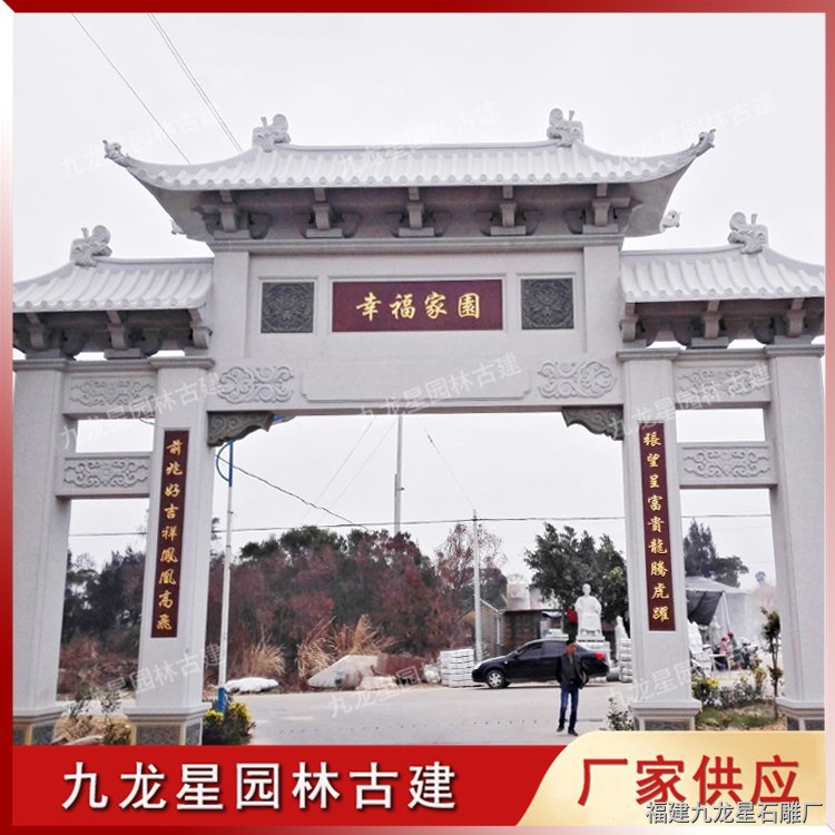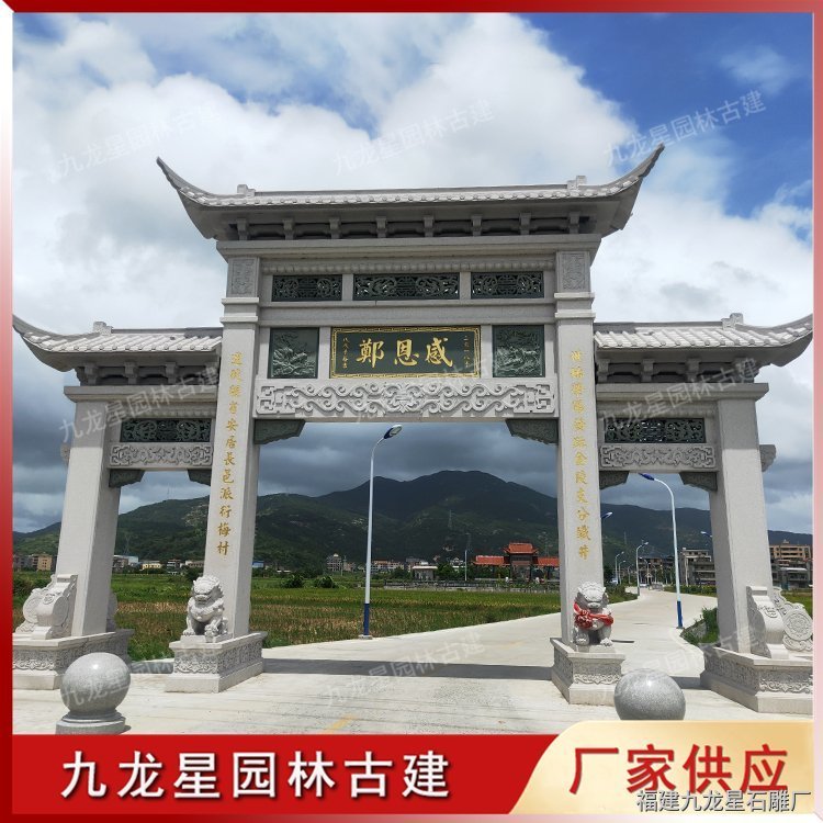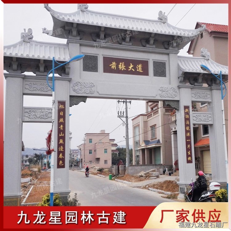 農(nóng)村石雕牌坊常見是用青石、花崗巖制作加工,經(jīng)過石雕牌坊訂制公司精心雕刻而成。石牌坊多樣的外觀形態(tài),豐富的文化內(nèi)涵,使得村石石雕牌坊成為新農(nóng)村建設(shè)的標(biāo)志性建筑。