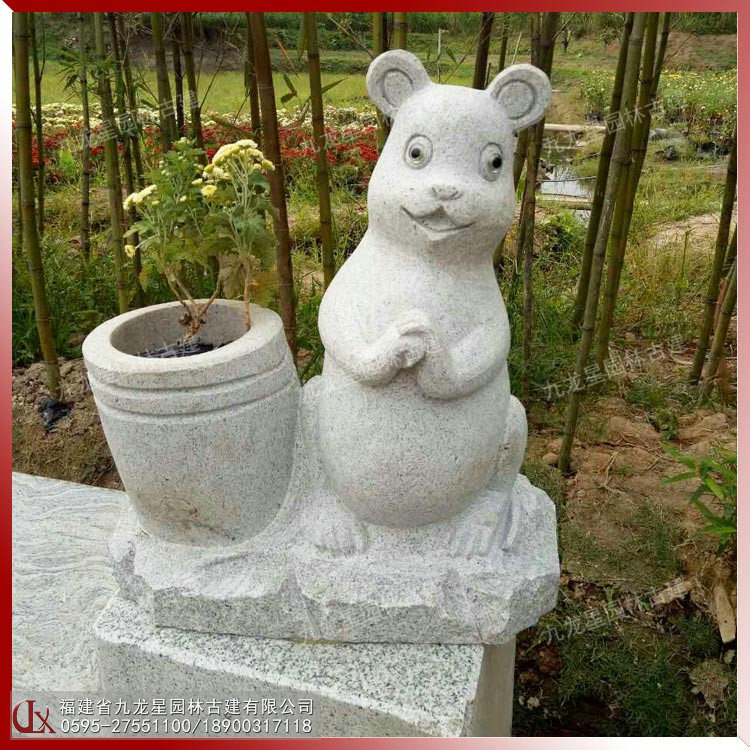 花園小品動物造型石材花缽,體量小巧,造型別致,可以美化環境,豐富園趣。成為游客在觀賞瀏覽公園時的另一道風景線。九龍星園林古建支持加工定做。
